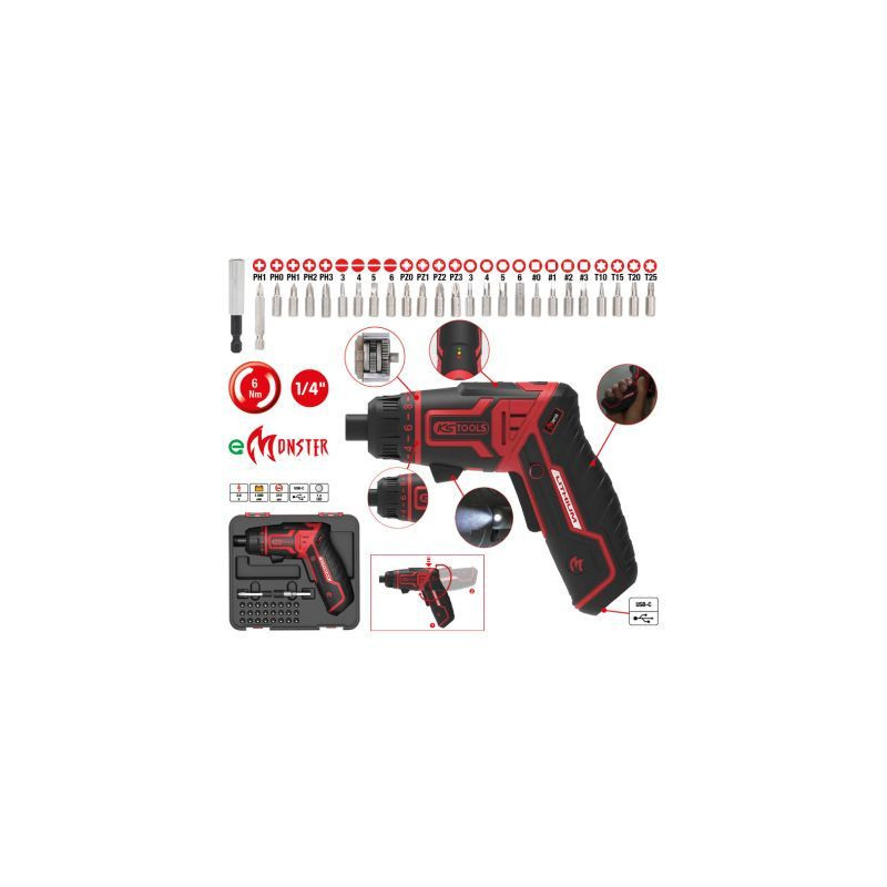 Lühiinformatsioon: 1/4" eMONSTER aku-otsak-kruvikeerajate komplekt, 27 osa Üldine informatsioon: •otsakutele vastavalt standardile DIN 3126 / C 6,3