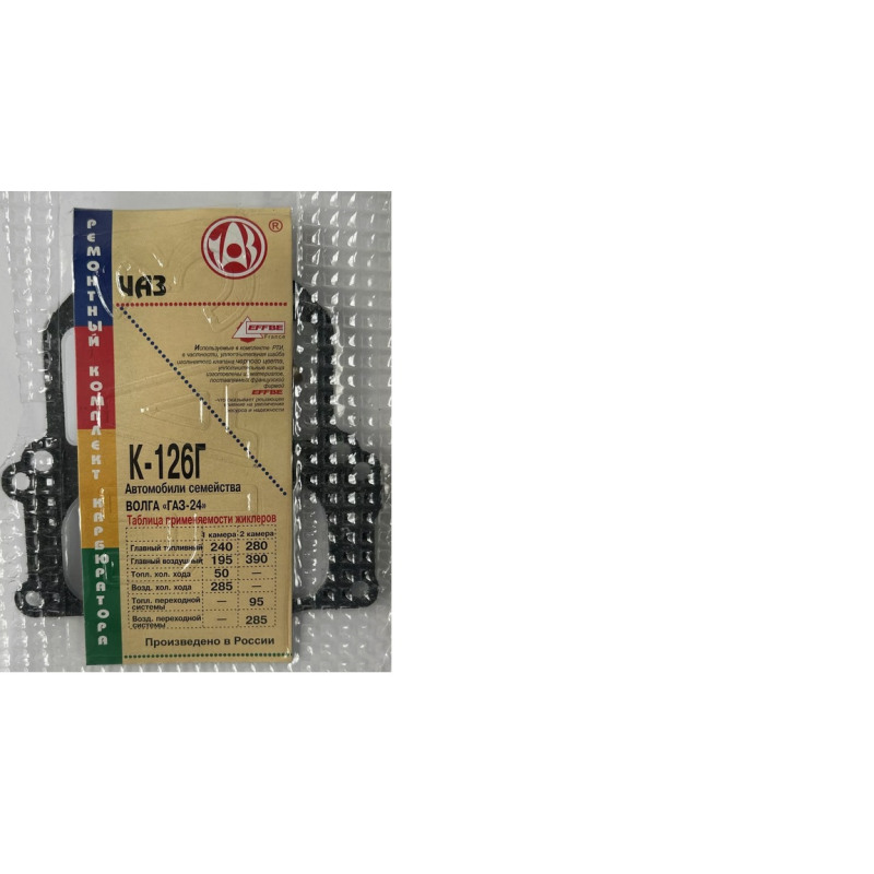 GAZ-24 karburaatori remondikomplekt K126GM (GAZ-2401) on mõeldud K126GM karburaatori remondiks ja taastamiseks. Komplekt sisaldab vajalikke tihendeid ja hermeetikadetaile, mis aitavad taastada karburaatori õige töö ja vähendada kütuselekkeid.