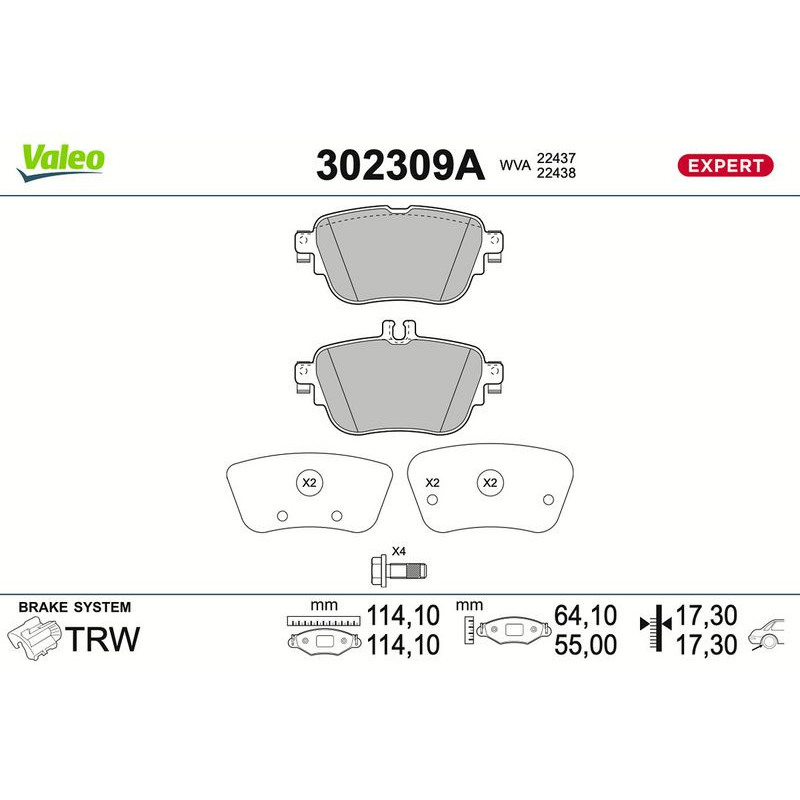 Piduriklotsi komplekt,ketaspidur VALEO 302309A - Ristmik autovaruosad
