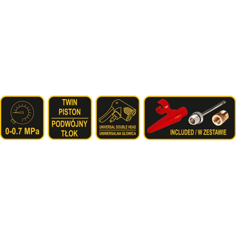 VOREL jalapump sobib auto-, mootorratta- ja jalgrattarehvide ning muude täispuhutavate esemete pumpamiseks. Sisseehitatud manomeeter (kuni 7 bar) võimaldab täpset rõhukontrolli. Tugev metallkonstruktsioon tagab vastupidavuse ja stabiilsuse. Kompaktne suurus võimaldab mugavat hoiustamist autos ja kasutamist teel.