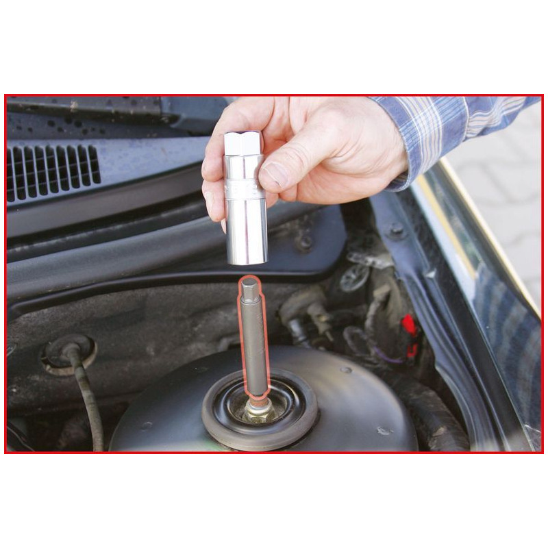 Lühiinformatsioon: 10 mm amortisaatori eriprofiiliga vastuhoidiku padrunotsak,7,0 x 10,0 mmÜldine informatsioon: •eriprofiil•ideaalne amortisaatori kolvivarda vastuhoidmisekskolvivarda mutri samaaegsel vabastamisel võikinnikeeramisel•professionaalseks ja kahjustusevabaks kasutamiseks –jälgige tootjate pöördemomendi väärtusi•remonditöödeks vedrupüstmiku piirkonnas (amortisaatorid,vedrupüstmiku laagrid, spiraalvedrud jne)•väliskuuskantajam 10,0 mm•liivajoaga töödeldud•kroom-vanaadium