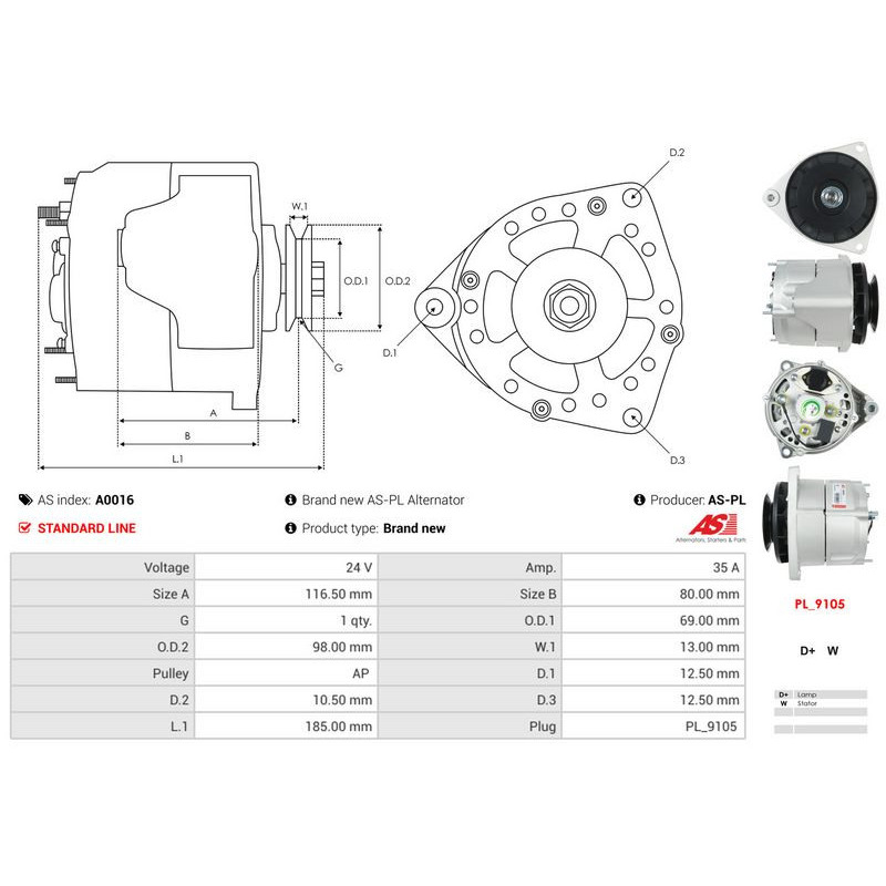 Генератор AS-PL A0016 - Ristmik autovaruosad