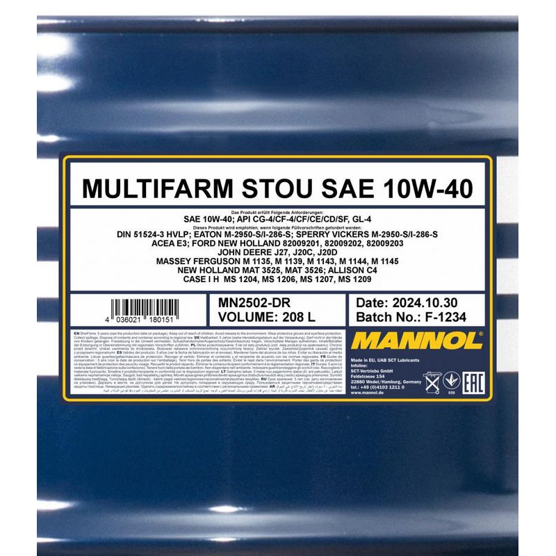 | MANNOL MULTIFARM STOU SAE 10W-40 | Торговый код |