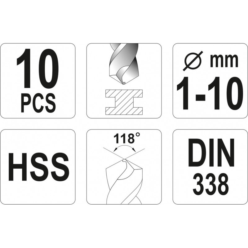 YATO YT-4461 набор сверл по металлу 10 шт 1–10 мм - Ristmik autovaruosad