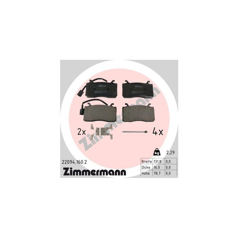 • Комплект тормозных колодок, дисковый тормоз ZIMMERMANN 22094.160.2